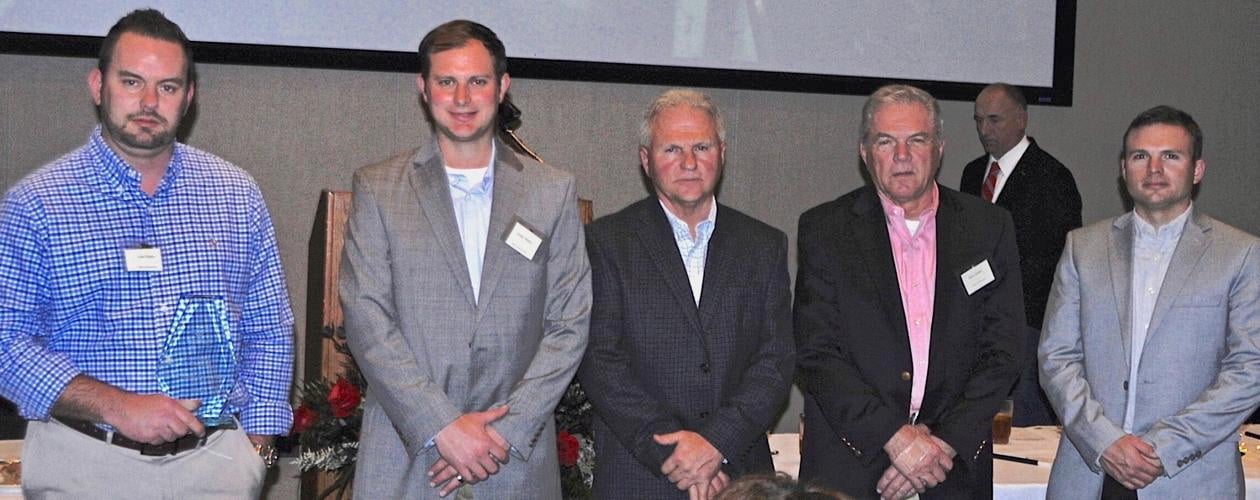 Chamber Chairman Randall Parsons presented the Excellence in Business Award to ASJ Mathis Farms LLC of the Cranberry section of Roaring River. Receiving this were owners Steve Mathis and his sons Luke and Jordan Mathis; and John Mathis and his son, Clint Mathis.